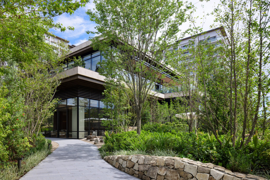 湘南エリアの魅力は、ランドスケープの豊かさだと思います。ですから、それを活かしたランドスケープデザインを軸に構築することを提案しました。建物の「顔」は一般的に建築物の外装にもたせるものですが、ここでは緑豊かなランドスケープやエクステリアを一体として定義。クライアントには基本計画の段階で「計画全体の基壇部はグリーン」「林のような豊かな樹木で挟まれたアプローチ」という考え方に同意していただけました。エクステリアは生活の延長であり、必要不可欠なアートの一部という提案です。ランドスケープデザインの重要性が共通認識となったため、コスト削減の対象になりがちなランドスケープの予算と考え方を竣工まで保つことができました。