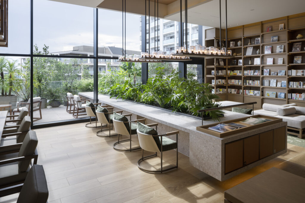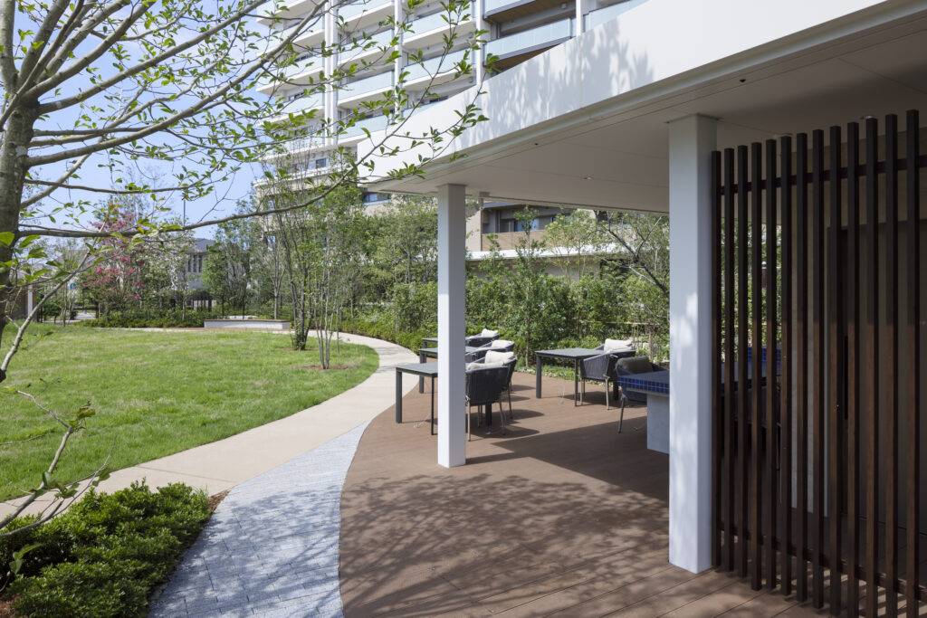 高宮:事業主は三井不動産レジデンシャル株式会社で、Fujisawa SST(Fujisawaサスティナブル・スマートタウン)の区画に位置するプロジェクトです。私たちは共用部インテリアに加えて、共用棟外装、そして全体ランドスケープのデザインの監修を担当しました。アクティブシニア向けの住居機能に加え、地域に開かれたランドスケープ、カフェ、広場、通り抜けできる道など、まちの一部としての施設と外構が求められていました。